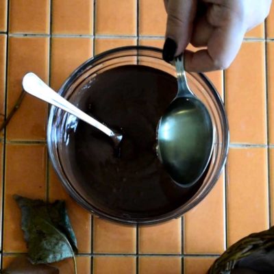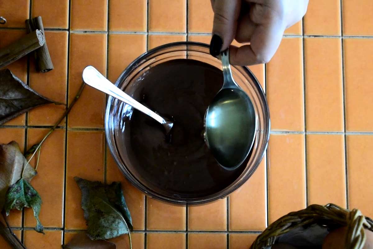 Per prima cosa, sciogliere il cioccolato fondente a bagnomaria. Una volta sciolto, aggiungere l'olio e mescolare.