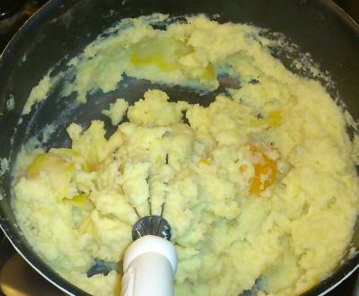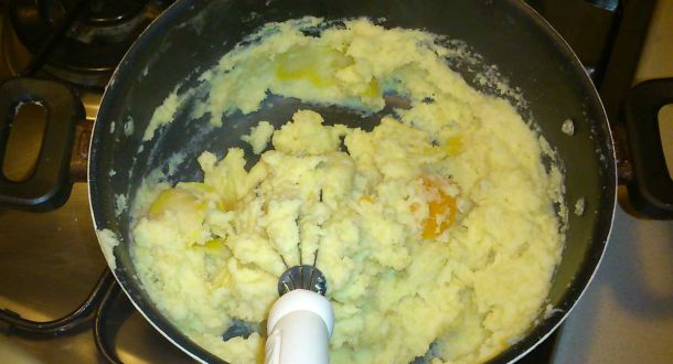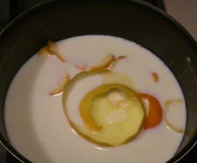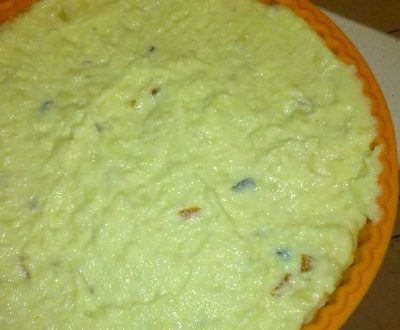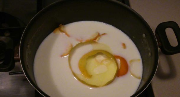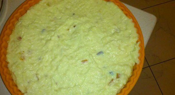 PreparazioneIn una casseruola fate bollire il latte, l'acqua, le scorze degli agrumi e il burro. Quando bolle versate il semolino a pioggia e mescolare fino a far addensare. Togliete le scorze e fate raffreddare. Passarlo al setaccio e aggiungere le uova, la ricotta setacciata, le essenze, il liquore e i canditi. |