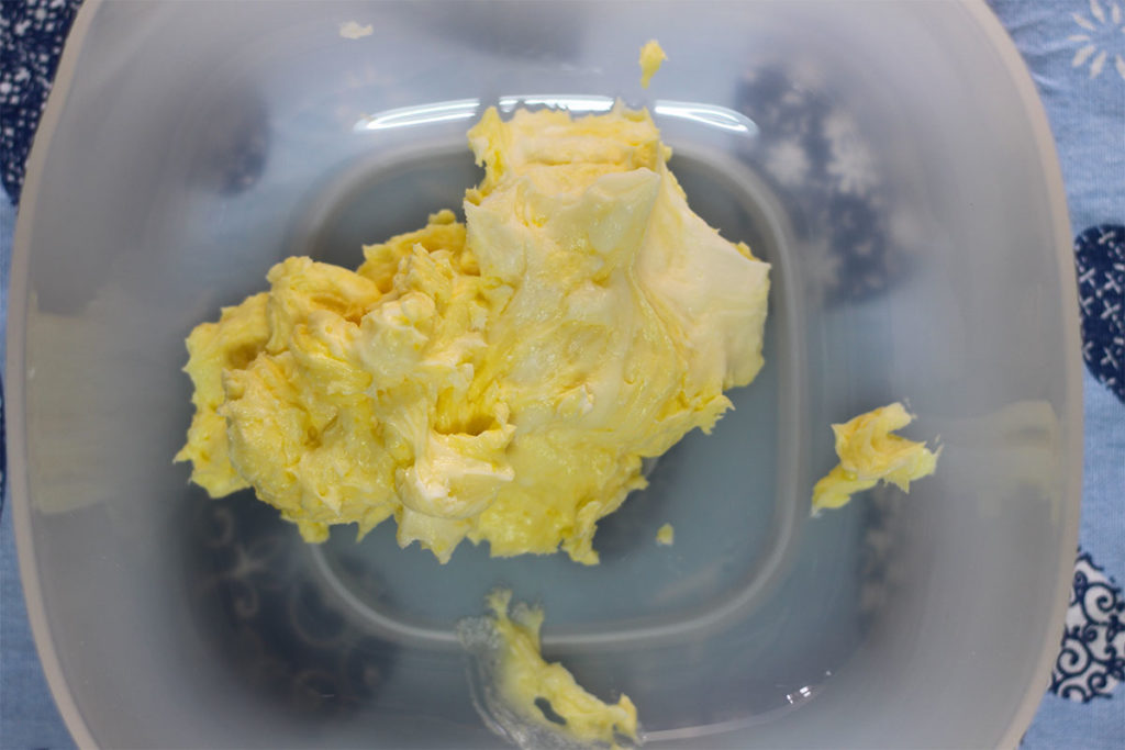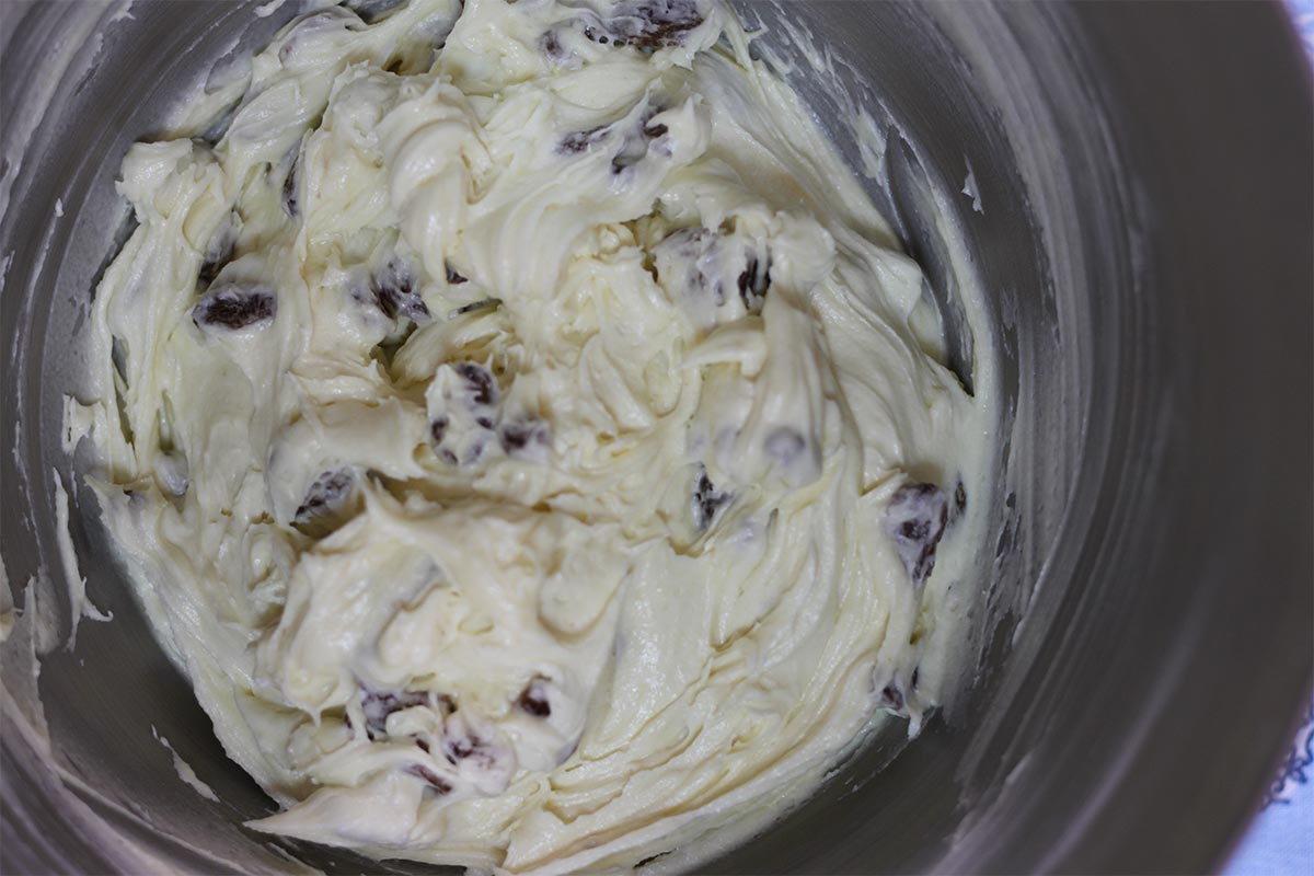 Unisci e completa l'impastoPer prima cosa aggiungi all'impasto del burro, quello fatto per primo, il rum ed il miele. |