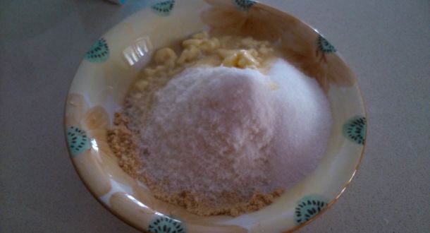Frullare i biscotti sbriciolati fino ad ottenere una polvere, mescolare tutti gli altri ingredienti insieme (il burro deve essere morbido).